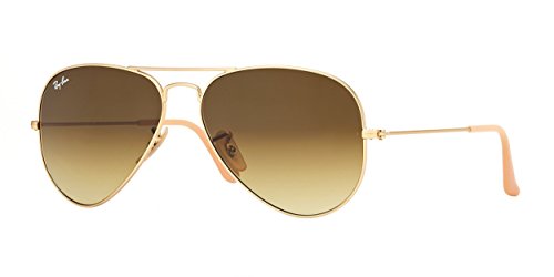 Bright mirrored lenses add a flash of color to a slim pair of classic Ray-Ban aviator sunglasses, set with a brushed metal frame. Logo lettering details one lens, and smooth plastic tips finish the slim temples. Case and cleaning cloth included.