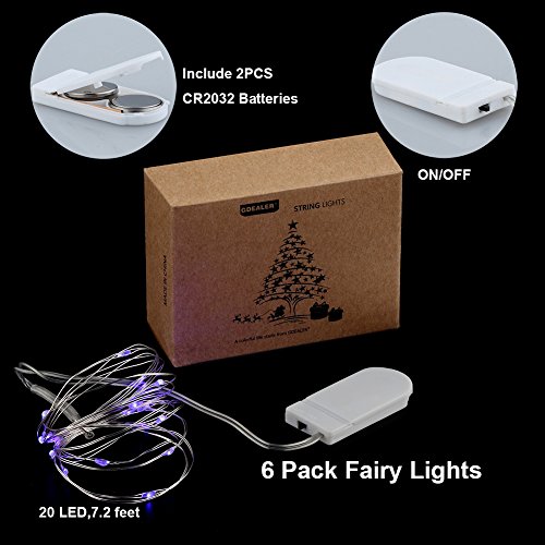 GDEALER 6 Pack Fairy String Lights 7.2ft 20LED Fairy Lights Starry String Lights Battery Powered Copper Wire Lights Firefly Lights LED Moon Lights for DIY Dinner Party Decoration Costume Making Blue