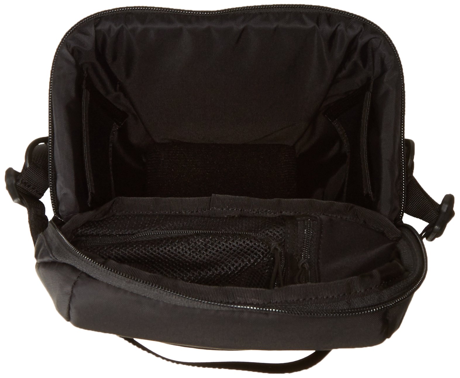 Two stretch mesh pockets on the inside and a large zipper pocket on the front are provided, and a memory card and a spare battery etc. can be stored.