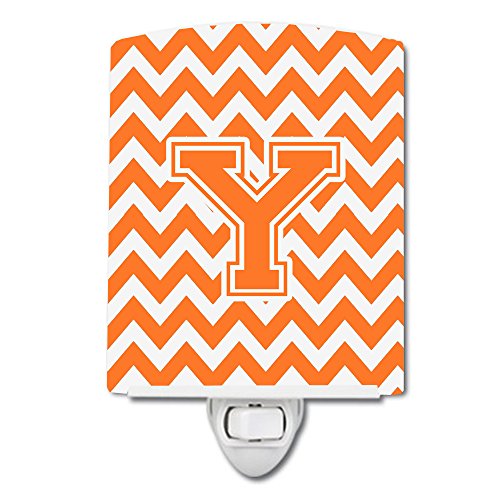 Caroline's Treasures Letter Y Chevron Orange and White Ceramic Night Light, 6 x 4", Multicolor