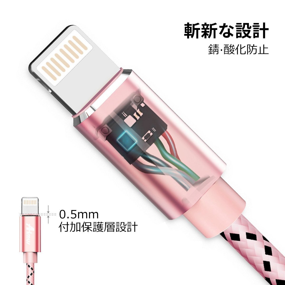 A protective layer of 0.5 mm is provided at the end of the lightning cable to reduce abrasion caused by repeated connection.