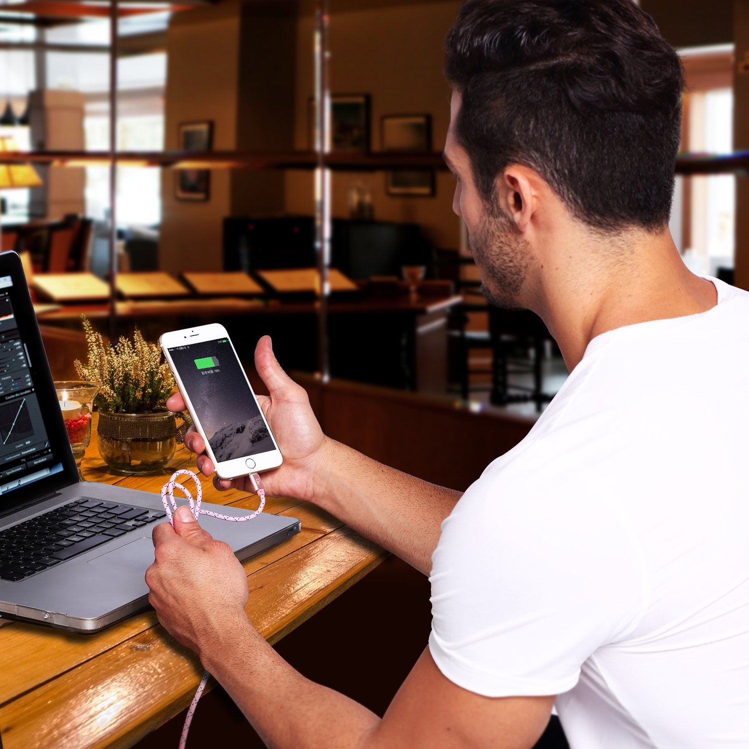 We woven nylon boasting high durability, finished in a cable with less entanglement.