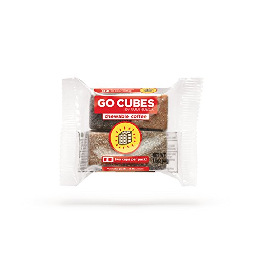 -. Feature : Box of 20 x 4-packs of GO CUBES Chewable coffee! Keep your coffee in your pocket instead of a cup. / Four gummies per pack, and each gummy is half a cup of coffee. Lasts you all day. / Three delicious flavors - mocha, pure drip, and latte (each pack is assorted). / Made for performance: 50mg caffeine, 100mg theanine, plus other supplements for focused energy on the go. / Perfect for coffee lovers - always have a perfect cube of coffee within arm's reach! Learn more at www.gocub.es