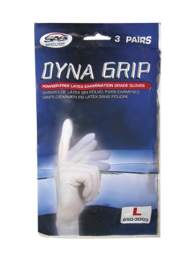 SAS Safety 650-3003 Dyna Grip Powder-Free Exam Grade Latex Gloves, Large, 3-Pack