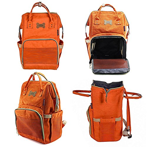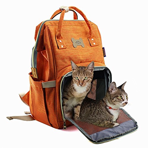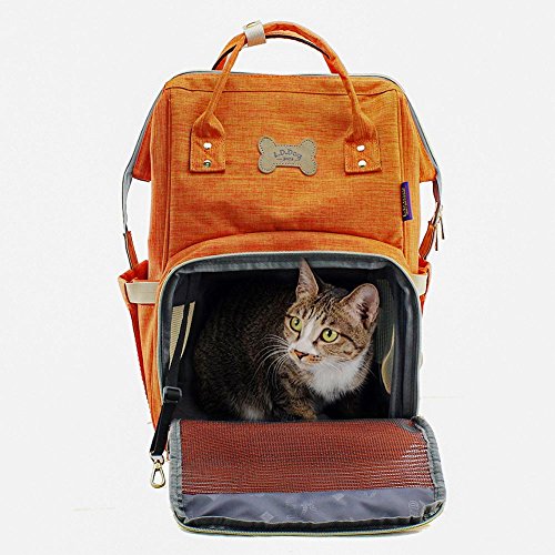 Features: Sturdy handle: Can be used as a portable pet travel tote bag. Side pockets: Allows you to carry other pet accessories in this travel cat carrier. Solid frame open top: The top entrance was constructed with built-in metal frame. Extra thick padding back: Makes it more comfortable for you to wear on this backpack. Sturdy padded shoulder strap: Help to reduce the burden and keep your pets safe. Inner Traction Clasp: Built-in traction clasp helps to secure your pets from escape. Removable pad: Removable and comfortable pad for pets sitting on the backpack carrier. Breathable mesh window: Breathable and good for pets to look through and for the owners to check out.