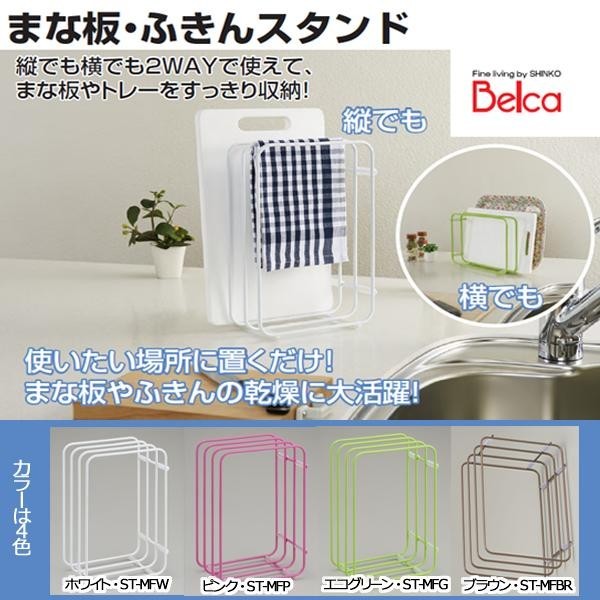 まな板やトレーをすっきり収納でき、まな板・ふきんの乾燥にも使用できるまな板ふきんスタンドです♪ 製造国:中国 素材・材質:本体:スチール(エポキシ焼付塗装)、足ゴム:シリコンゴム 商品サイズ:191×124×281mm 重量:420g ※サプライヤー直送品  ご注文後2~3営業日後の出荷となります【商品名】Belca(ベルカ) まな板ふきんスタンド エコグリーン・ST-MFG