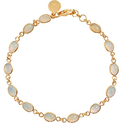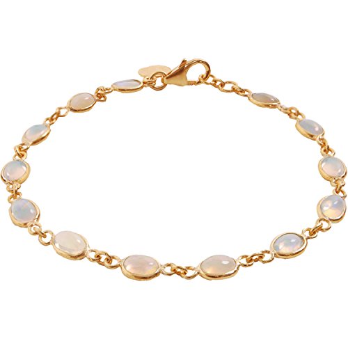 ELEGANT & STYLISH DESIGN - Classically elegant, this delicate station bracelet features a beautifully polished row of natural, bezel-set opal gemstones. The luminous oval-shaped October birthstones are naturally iridescent, exuding deep, vivid hues with every turn of the wrist. Each natural stone was hand-picked and finished by our master jeweler in high-quality sterling silver with 14k gold-plating. Ethically sourced.