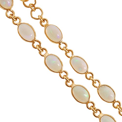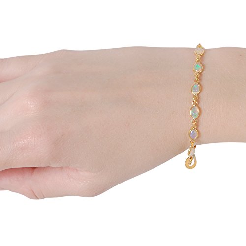 SUPERIOR QUALITY - Measurements: 7 inches long including two loop extension. Stones measure: 6mm x 4mm. Natural Ethiopian Opal hand-picked stones in an oval cabochon cut. Bezel setting, chain links, lobster clasp closure, and two ring extension is hand-finished in 14k Gold-Plated 925 Sterling Silver. Hypoallergenic and safe for sensitive ears. Natural stones are individually unique and may vary from the ones shown in the photo. Due to monitor differences, colors online may vary slightly from th