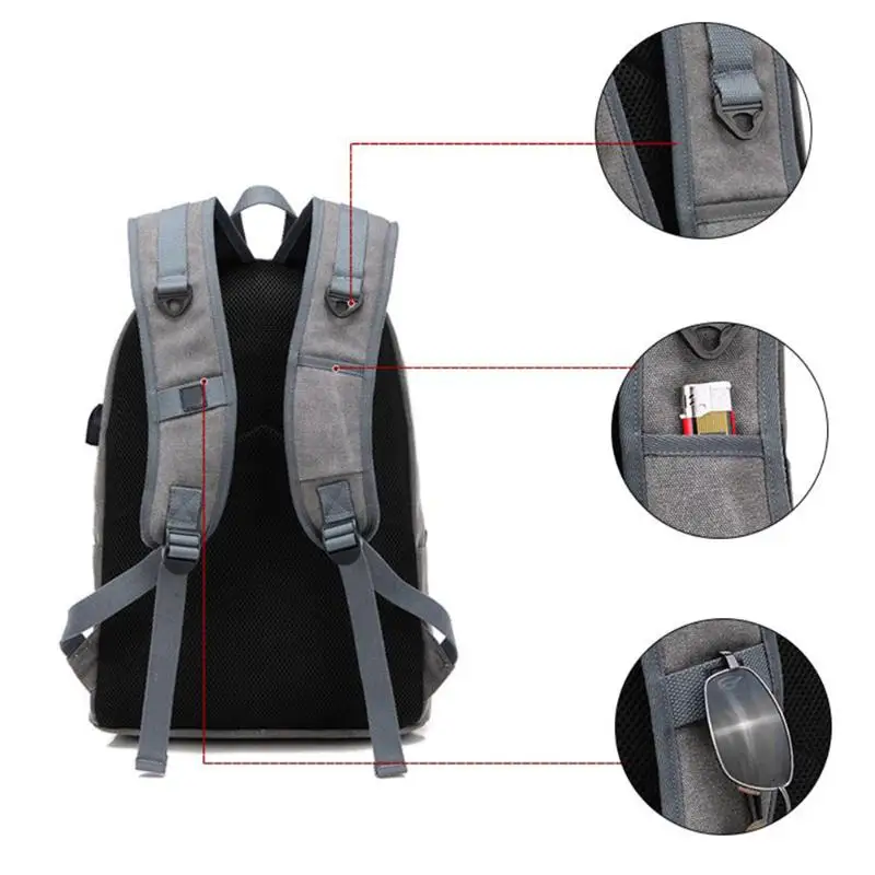 About Color: 1. All product images were taken in kind. 2. The color of images might be slightly different than real product due to the shooting light intensity and the color setting of each individual monitor. 3. If you can not accept slight color difference, please do not place you order. High-grade canvas material, health, environmental protection wear-resisting durable, you can keep your card or money or any other things in it where you are, every one like it! it is quite convenient for you to go shipping or hanging around on the street or enjoying a cup of coffee in the cafe. so give your life comfort and easiness! it is long enough for daily use. Specifications: Material: canvas Lining material: Polyester cotton(internal material color random) Size: approx. 44x32x17cm/17.32x12.6x6.69'' Purpose: backpack Type: as shown Material craft: soft Style: portable USB charging backpack Note: shoulder strap adjustable