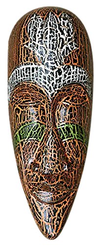 NOVICA Decorative Lombok Large Albesia Wood Mask, Brown 'Exotic Emerald'