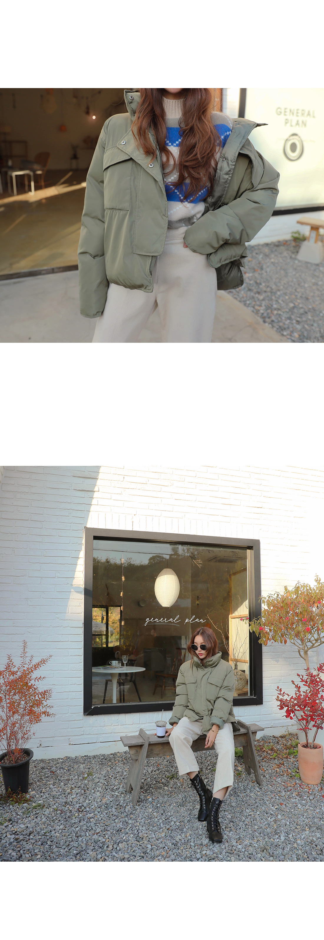 MD COMMENT유니크한 디자인의 숏패딩점퍼를 소개할게요.여유있는 핏감으로 두꺼운 이너와 함께입어도 불편함 없는 피팅이 가능하구요.뛰어난 보온성의 웰론 충전재로 보온성있게 겨울내내 즐길수 있는 아이템이에요. 앞뒤 다른 기장으로 옆트임을 주면서 포인트를 주었구요. 넥이 높이 올라오는 디자인으로 보온성을 한층- 높여주었답니다-!수납가능한 포켓디테일들이 더해졌구요. 편안하게 입기 좋은 아이템이니 만큼 얼른 초이스하셔서 겨울내내 데일리하게 활용하세요-!COLOR/SIZE카키,블랙FREEMODEL FITTING카키/FREE