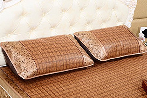 -. Feature : Dimensions: Mat: 71"Wx79"L(180cmx200cm), Pillow case: 28"x19"(71cmx47cm) / Set includes: rattan mat X1, pillow case X2 / Surface material: regenerated cellulose composites, polyester fiber, cotton, viscose; Base material: 100% polypropylene fiber; Side material: 101% polyester fiber / Instructions: Wiping with a wet towel, no laundry detergent; No expose to sunlight for a long time; Storage by fold or roll / Smooth and breathable, make you feel cool for sleeping in hot summer