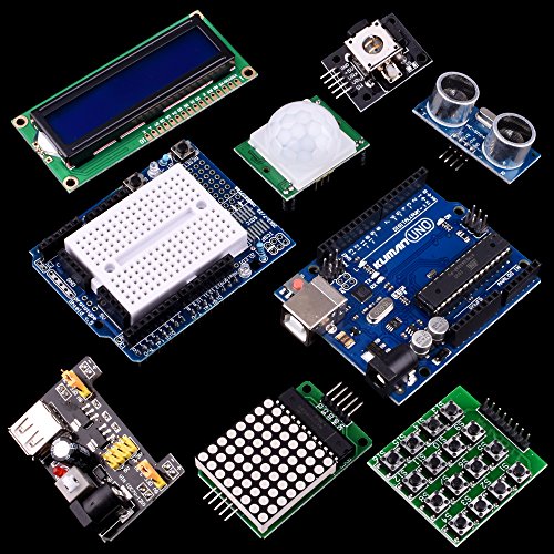 Has all the arduino products you need in Nice package with clear listing , such as 9V 1A Power Supply lcd display Ultrasonic Sensor Module shield SG90 motor Ultrasonic Sensor Module wire,LED, IC,buttons,diodes ,etc.All the modules come soldered so they are easy to wire up.