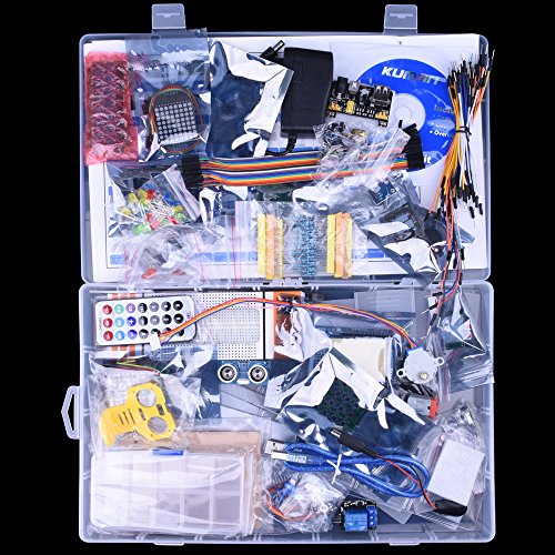 The most complete, biggest and highest cost performance starter kit with 66 kinds of arduino products, more than 200pcs components.Kuman UNO R3 development board is also included,and USB cable, 100% compatible with Arduino UNO R3, MEGA 2560 R3, NANO, Arduino kit.