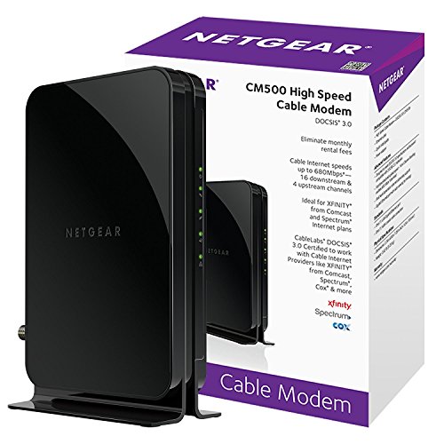 The NETGEAR CM500 High Speed Cable Modem provides a connection to high-speed cable Internet, up to 680Mbps. It is Cable Labs certified and with DOCSIS 3.0 is 16X faster than 2.0 devices. It works with U.S. cable Internet provider Comcast XFINITY & more. It is not compatible with cable bundled voice services.