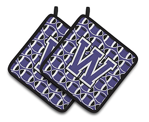 Caroline's Treasures Letter W Football Purple & White Pair of Pot Holders CJ1068-WPTHD, 7.5HX7.5W, Multicolor