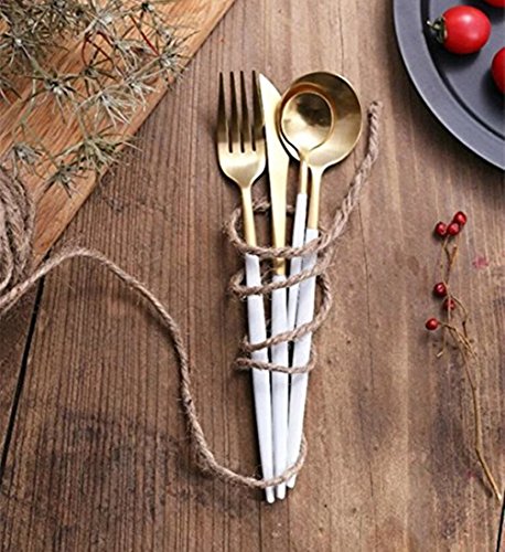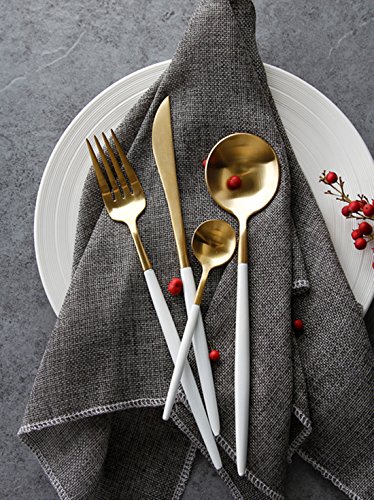 Jinsen Customized Stainless Steel Flatware Set for Home Kitchen Restaurant Hotel ( White + Gold)