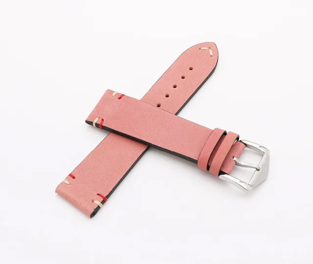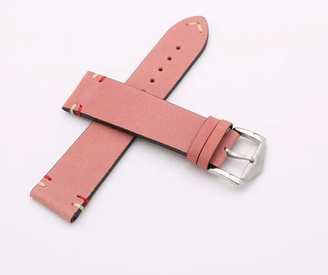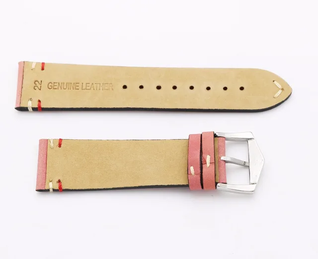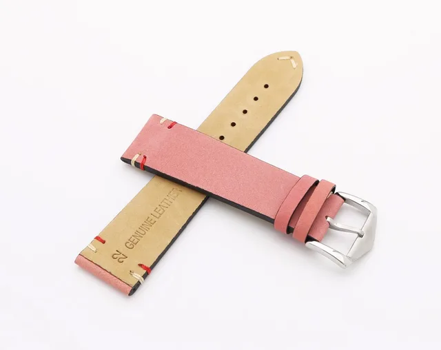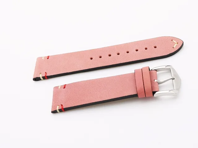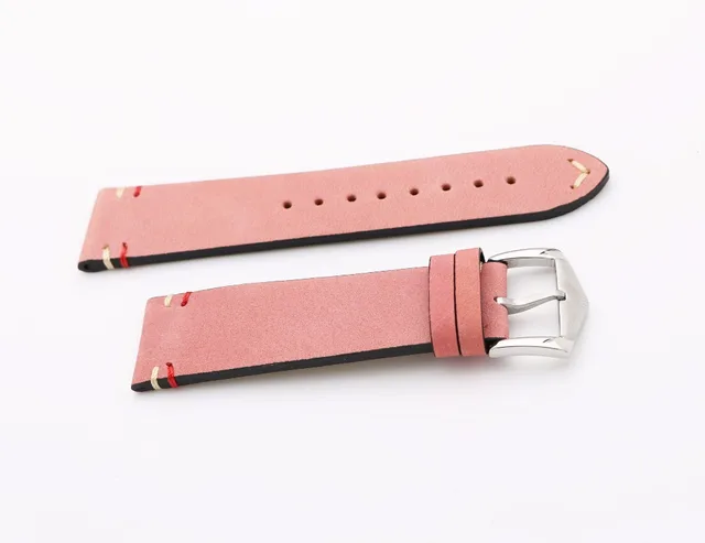 | [해외] 20 22 미리메터 최신 럭셔리 남성 여자 진짜 소 가죽 스웨이드 가죽 핑크 빈티지 손목 시계 밴드 스트랩 벨트 실버 폴란드어 핀 버클 |