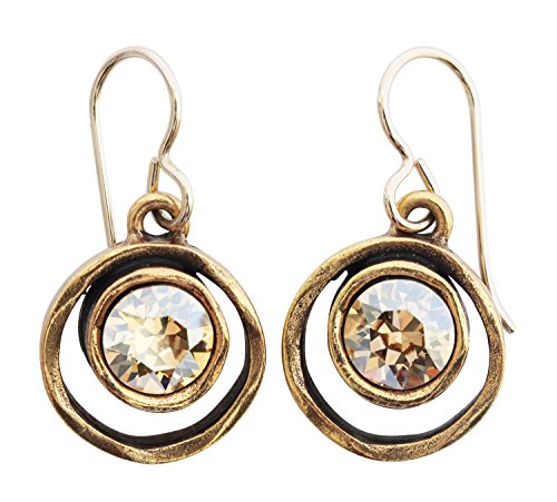 Antiqued goldtone earrings with beautiful golden shadow crystals.