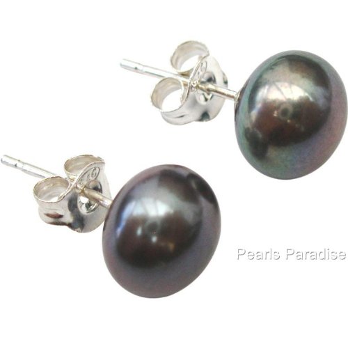 Striking 8mm Peacock Cultured Pearls set on silver (925) hallmarked posts and butterflies. The Cultured Pearls have very good lustre and are ideal for Fashion, Birthdays, Informal/Formal, Valentines, Weddings and Anniversaries. These earrings are classic and are suitable for all ages. Black Cultured Pearls are rarely jet black but have blue, green, grey, aubergine, peacock and more overtones. The earrings come in a pretty pouch with a gift card and care of your Cultured Pearls guide. All our Cultured Pearl jewellery features genuine Cultured Pearls which are carefully selected by us.Feature