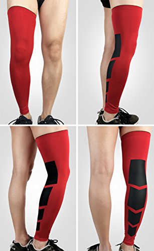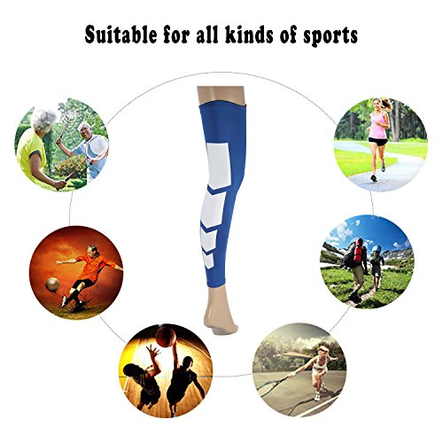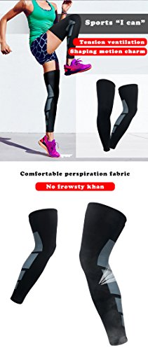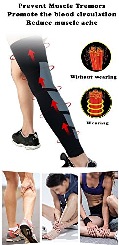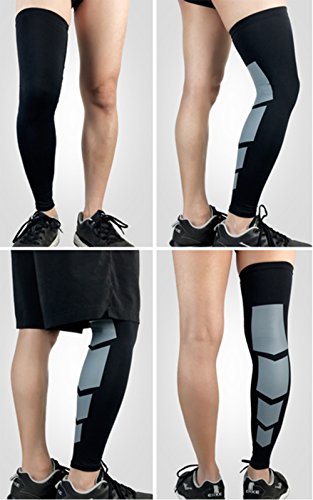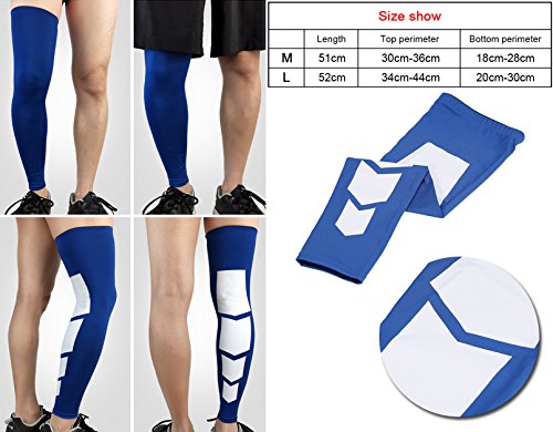 -. Feature : Compression design help you get relief from shin splints symp pain, provide muscle stabilization, reduce muscle vibration and fatigue. Offers extra calf and shin guard while exercising, minimizes damage in the lower legs, enhances blood circulation, increases strength during workouts, allows muscles to work efficiently. / Anti-slip silicone padding on top of sleeves to prevent it from sliding off even during the strenuous exercise. It is very comfortable to wear and compression sleeves are flawless from top to bottom. They offer true graduated compression. This ensures increased blood transport to muscles over the entire length of the sleeve. / Our knee support are applicable for knee pain and discomfort, knee fatigue, fitness, cross training, weight lifting, gym workouts and any other types of exercises. Ultra long design provides the support you need for your calf, shin, knee and thigh. Wonderful companion and great sport accessory for you. / Material: 85% Polyester + 15% Spandex. Adopting eco-friendly fiber and spandex material, which is breathable, high elastic, skin-friendly, moisture absorption and comfortable. / Please measure the leg circumference to determine the proper size compression sleeve for you.( M: length: 51cm / 20.08" ,top perimeter: 30-36cm / 11.81"-14.17", bottom perimeter: 18-28cm / 7.09"-11.02"; L: length: 52cm / 20.47" ,top perimeter: 34-44cm / 13.38"-17.32", bottom perimeter: 20-30cm / 7.87"-11.81")
