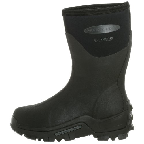 Studio : MuckBoots Publisher : MuckBoots Binding : Apparel Product Description The Muck Boots Muckmaster Mid is the ultimate,all-weather heavy-duty boot. This unisex boot offers extra durability, superiorprotection, and high-quality comfort, with features such as 100-percentwaterproof, extra-thick, vulcanized rubber uppers, a crush-resistanttoe, and a reinforced, heavy-duty traction sole designed to handle snowand mud. A contoured footbed and soft inner lining provide acomfortable fit, while extra rubber underlays and full bootieconstruction insulate this Muck Boots boot to sub-freezing temperatures. Aremovable, 6-mm, Nitracel EVA sock liner is included, providingadditional, optional comfort. Ultra-durable and extra-comfortable, theMuck Boots Muckmaster Mid make tackling your dirtiest and wettest chores that mucheasier. 0