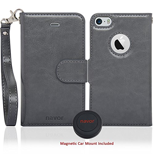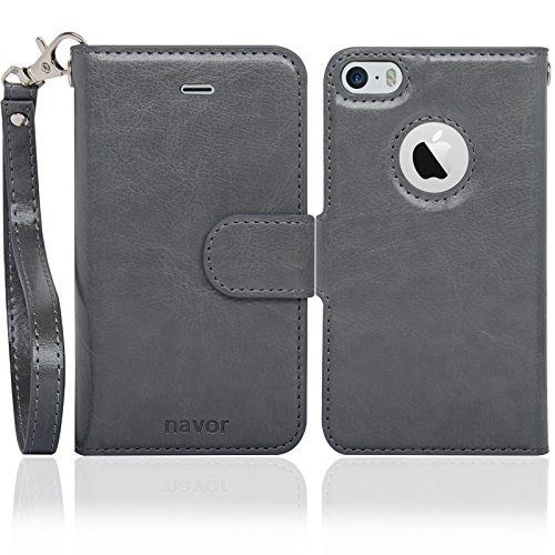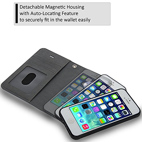 NavorPremium Wallet Case with Magnetic Detachable Cover for iPhone 5