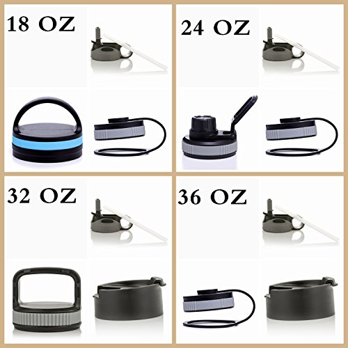 SUCFORST Water Bottle +2 Extra Lids- Vacuum Insulated Stainless Steel Wide Mouth Travel Mug - Powder Coated Double-Walled Flask,36 oz,32 oz,24 oz,18 oz