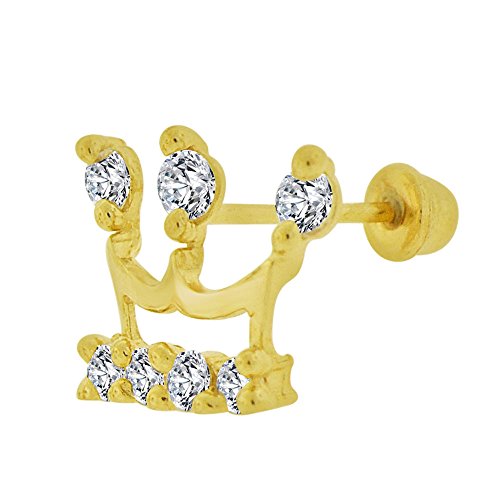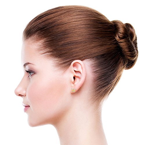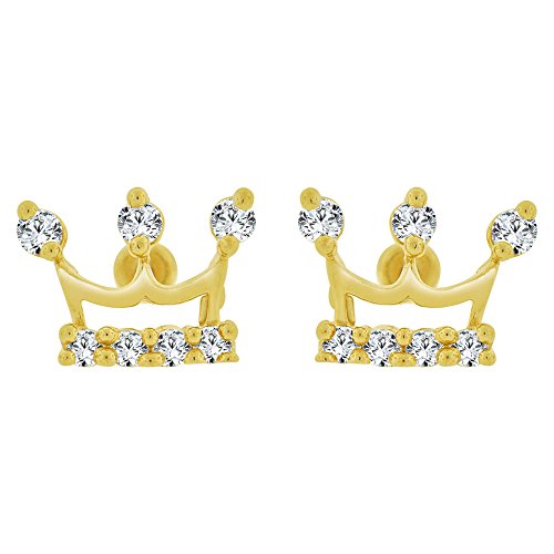 14k gold crown tiara stud earring. Beautifully adorned with sparkling stones, this item is perfect for the princess in your life! The safe and secure rounded screw backing is perfect for all ages and is ultra comfortable to wear.Feature