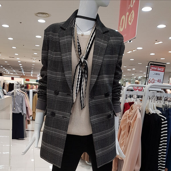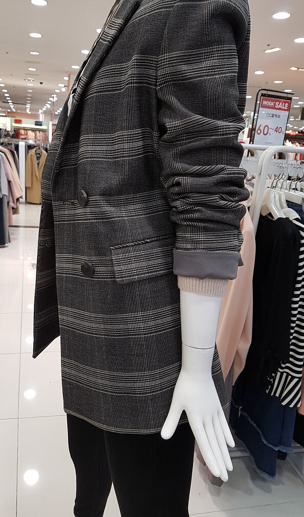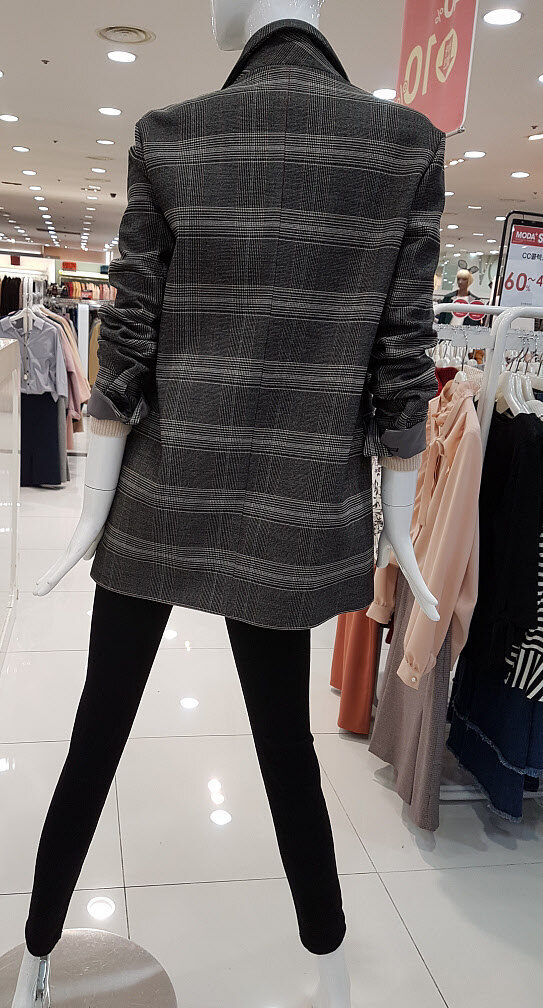 떨어지는 어깨선은 날씬하구요멋스런 체크가 세련하죠^^소매배색에 포인트 있구용캐쥬얼,정장 고민마시고 찜~하셔용