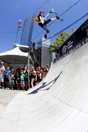 -. Feature : Designed, developed, and tested by Team Razor Pro Rider Jason Beggs / Built for bigger pro riders who are looking for a nice, sleek style scooter, perfect for parks / Riser Y-bar style 4130 CroMoly handlebar with pro style rubber grips / Laser etched green alloy core 110mm white high grade polyurethane 88A wheels with RZR Pro 50 bearings / Also, features full deck rider-designed grip tape, anti-rattle brake system, and double coffin clamp