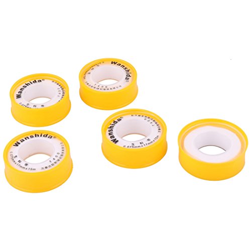 uxcell PTFE Home Roll Plumbing Water Pipe Tube Fitting Thread Seal Tape 5 Pcs Yellow