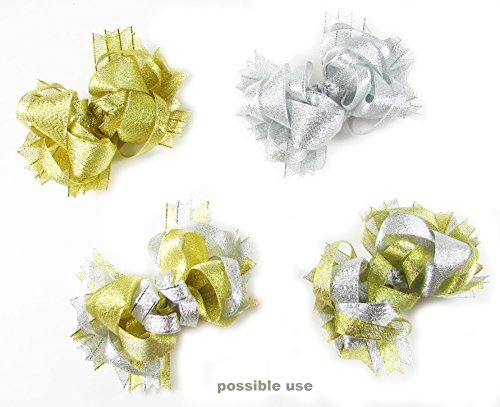 - Material: 100% polyester with metallic gold color glitter. 25 yds of 1 inch thick metallic cloth fabric ribbon are perfect for crafting, hairbow and bow tie making, holiday and happy birthday party gifts wrapping. High quality ribbon is constructed of a sturdy thread weave. Can be used as hair ribbon for braids, tie bows on ponytail or pigtail; great to cover the metal alligator clip or wrap girls headbands.