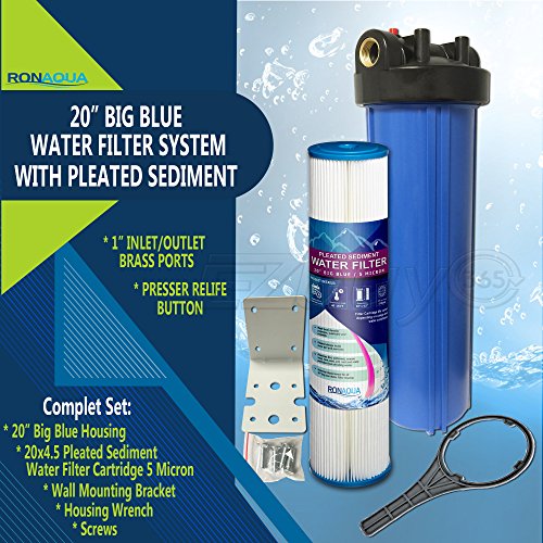 20" Big Blue Water Filter Purifier System with 5 Micron 4.5 x 20 Pleated Sediment Cartridge