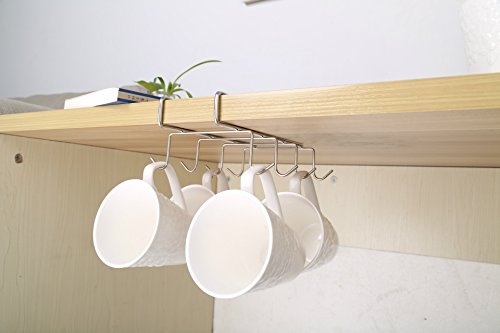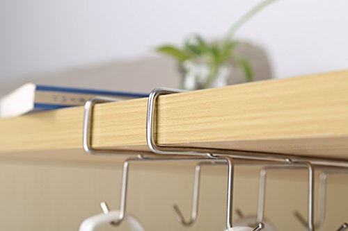 Fashionclubs Stainless Steel 8 Hook Under Shelf Mugs Cups Wine Glasses Storage Hanging Drying Holder Rack
