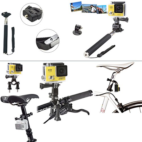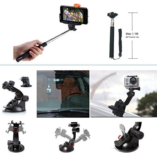 Complete set of action camera accessories kit, works with GoPro camera, SJCAM. Consist of Suction Cup Mount which allowed you to attach your camera to cars, boats, motorcycles and any other smooth surface, and you can adjust your camera to different angles with it.