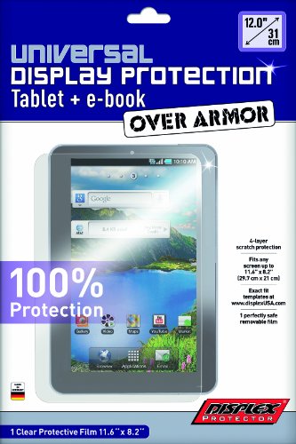 -. Binding : Sports -. Brand : Displex -. EAN : 0878805005304 -. Feature : For tablet and eBook / Fits any screen up to 11.6" x 8.2" / 4 layer scratch protection / Engineered to be bubble free / Over Armor -. Label : A.C. Kerman - LE -. Manufacturer : A.C. Kerman - LE -. Model : 00310 -. MPN : DX00310 -. PackageQuantity : 1 -. PartNumber : DX00310 -. ProductGroup : Sports -. ProductTypeName : SPORTING_GOODS -. Publisher : A.C. Kerman - LE -. Size : Large -. Studio : A.C. Kerman - LE -. Title : Displex Universal Tablet Screen Protector for Large Tablets, 12-Inch -. UPC : 878805005304
