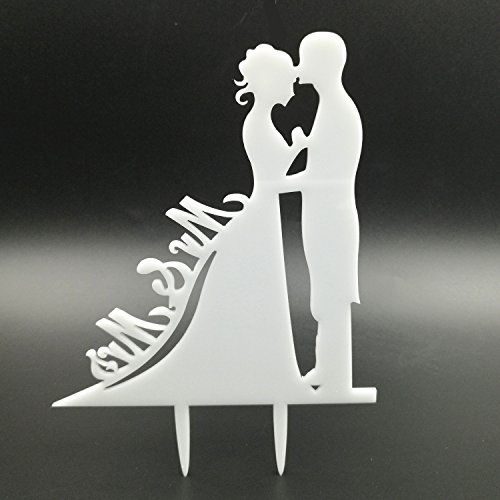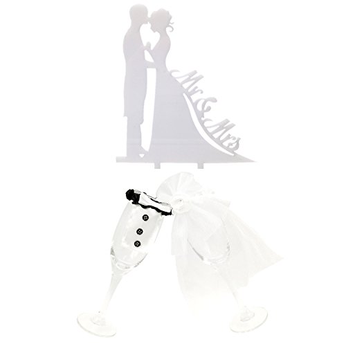 Kalevel 3pcs Bride and Groom Cake Topper Acrylic with Wine Bottle Covers Marriage White Mr and Mrs Cake Topper Champagne Wine Bottle Covers Wedding Country Vintage Wedding Cake Toppers