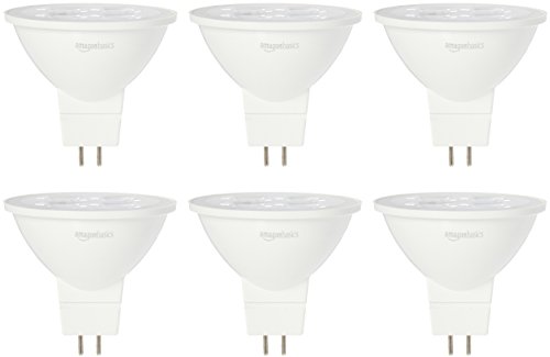 AmazonBasics 50 Watt Equivalent, Bright White, Dimmable, MR16 LED Light Bulb | 6-Pack