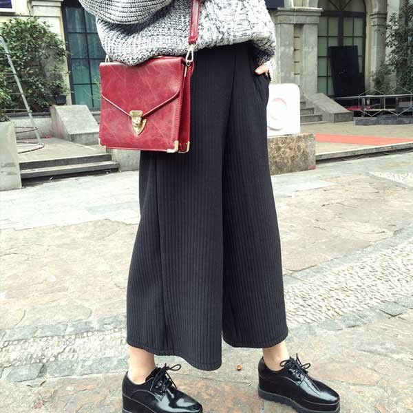 説明文プリーツ風の生地感がカジュアルなワイドパンツです。
