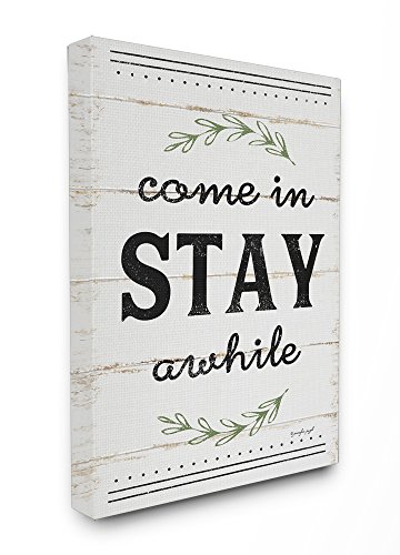 Stupell Industries Come Stay Awhile Rosemary Typography Distressed White Oversized Stretched Canvas Wall Art, 24 x 1.5 x 30, Proudly Made in USA