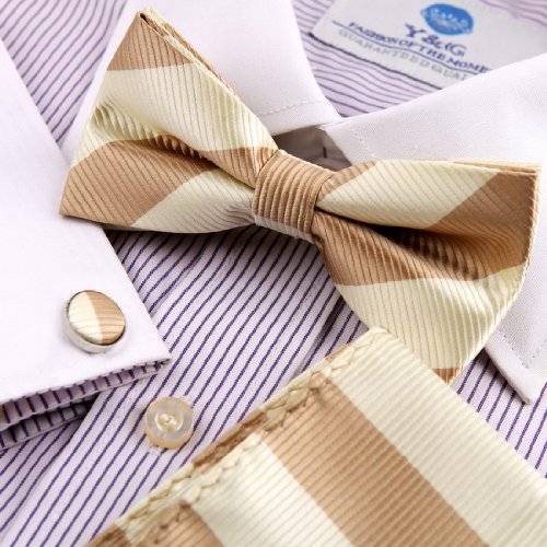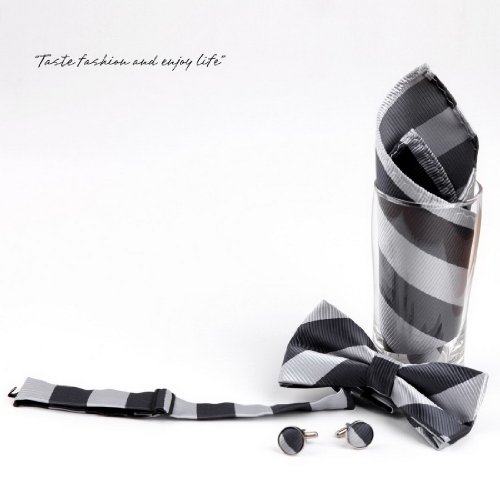 With exactly the same color and pattern cufflinks and hankchief, this bowtie set makes the perfect gift, and would certainly look stunning on any wedding daygroom.