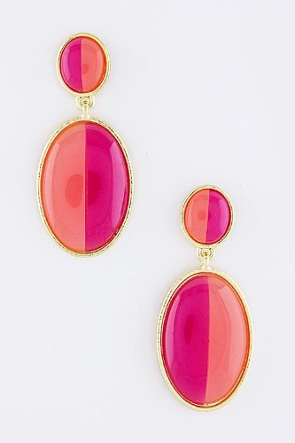 - Feature : Two tone oval earrings 2"" approx. drop / Post back / Acrylic / Lead compliant / ""