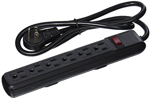 CableWholesale 845-51W1-12204 Surge/Modem Protector Power Strip, Flat Rotating Plug, 6 Outlet, Black Horizontal Outlets, Plastic, Power Cord, 4-Feet