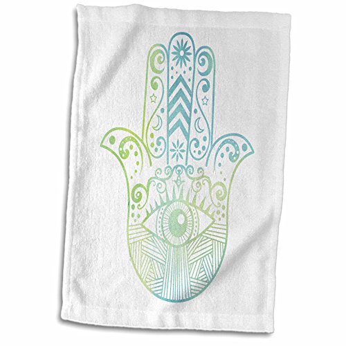 3D Rose Hamsa Hand Green and Blue Watercolor Towel, 15" x 22"