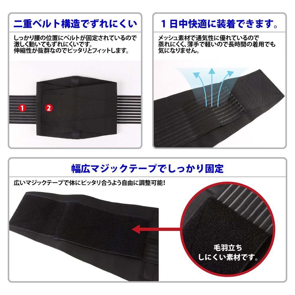 Using high elasticity auxiliary belt, you can freely adjust the pressing force on your waist by your waist circumference