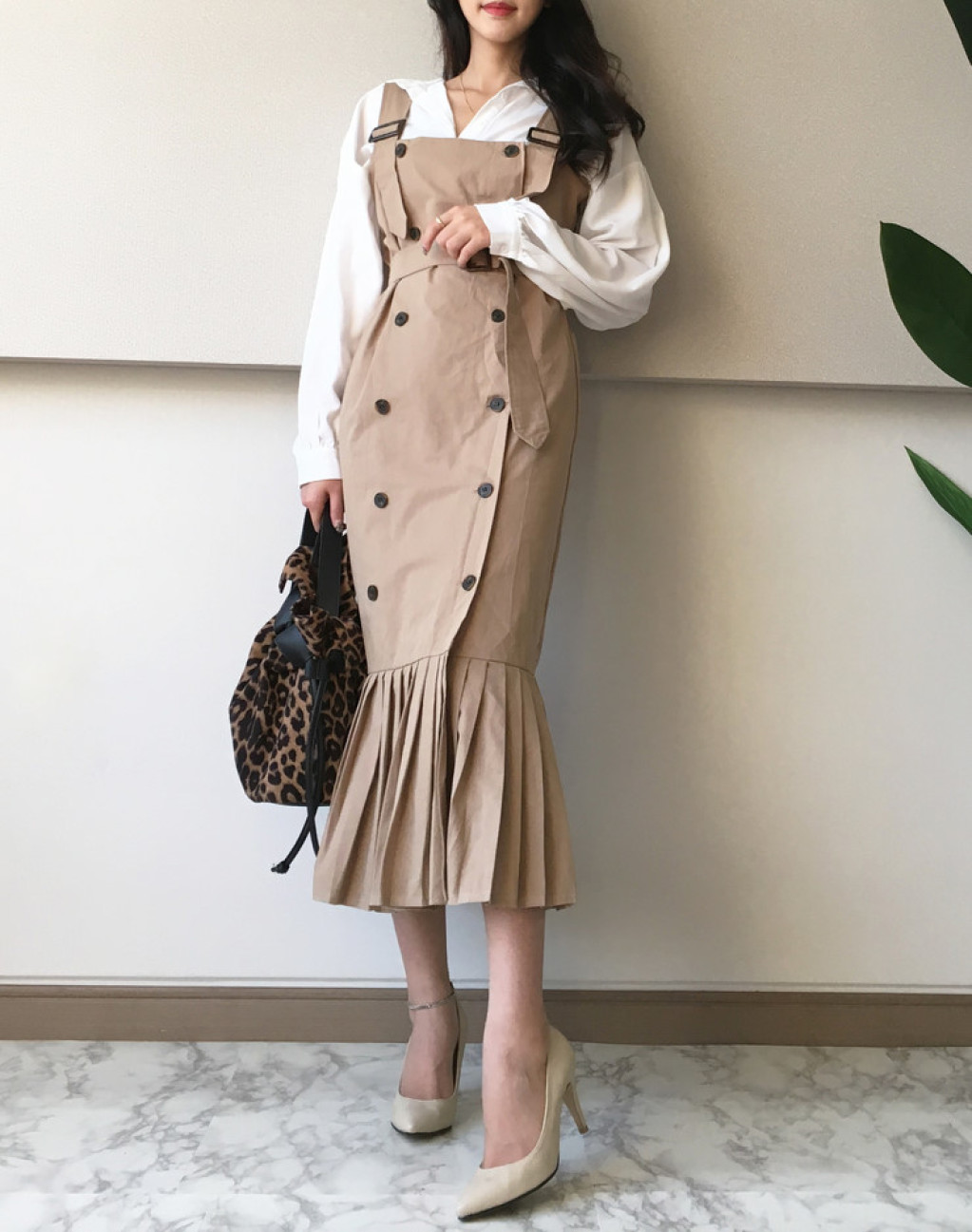 밑단 플리츠 디자인이 더욱 여성스러운 실루엣을 더해드리며