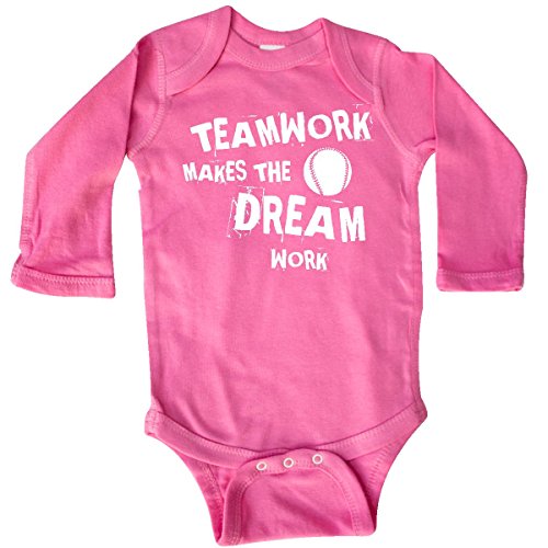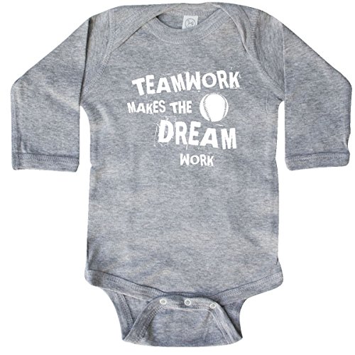 Product Description Motivational baseball Long Sleeve Creeper with silhouette baseball graphic says TEAMWORK MAKES THE DREAM WORK. Inspire team spirit. Great gifts for baseball players, fans and coaches. 0