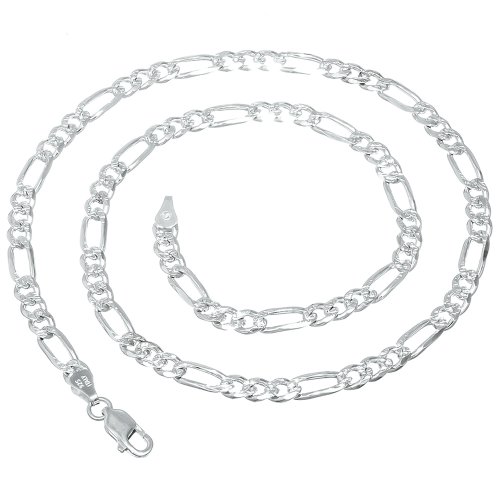 - Title : 24 Inch 5.5MM Thick - Diamond-Cut Figaro Link Chain Necklace/Bracelet - Genuine .925 Solid Sterling Silver