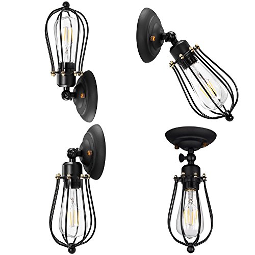 - Multiple lighting possibility:The Wire Cage Wall Sconce features a 240°adjustable head, you can make the light cast upward or downward for mood or ambient lighting. This Industrial Cage Light comes with the wall sconce and installing accessories for easy installation.